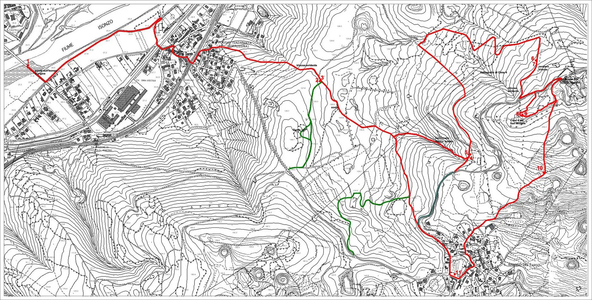 A questo bivio la decima poesia: Sonnolenza. L’itinerario letterario si completa con un’ultima e famosissima lirica San Martino del Carso proprio a San Martino. Il sentiero poi prosegue per chiudersi ad anello e ritornare al punto di partenza a Poggio Terza Armata.